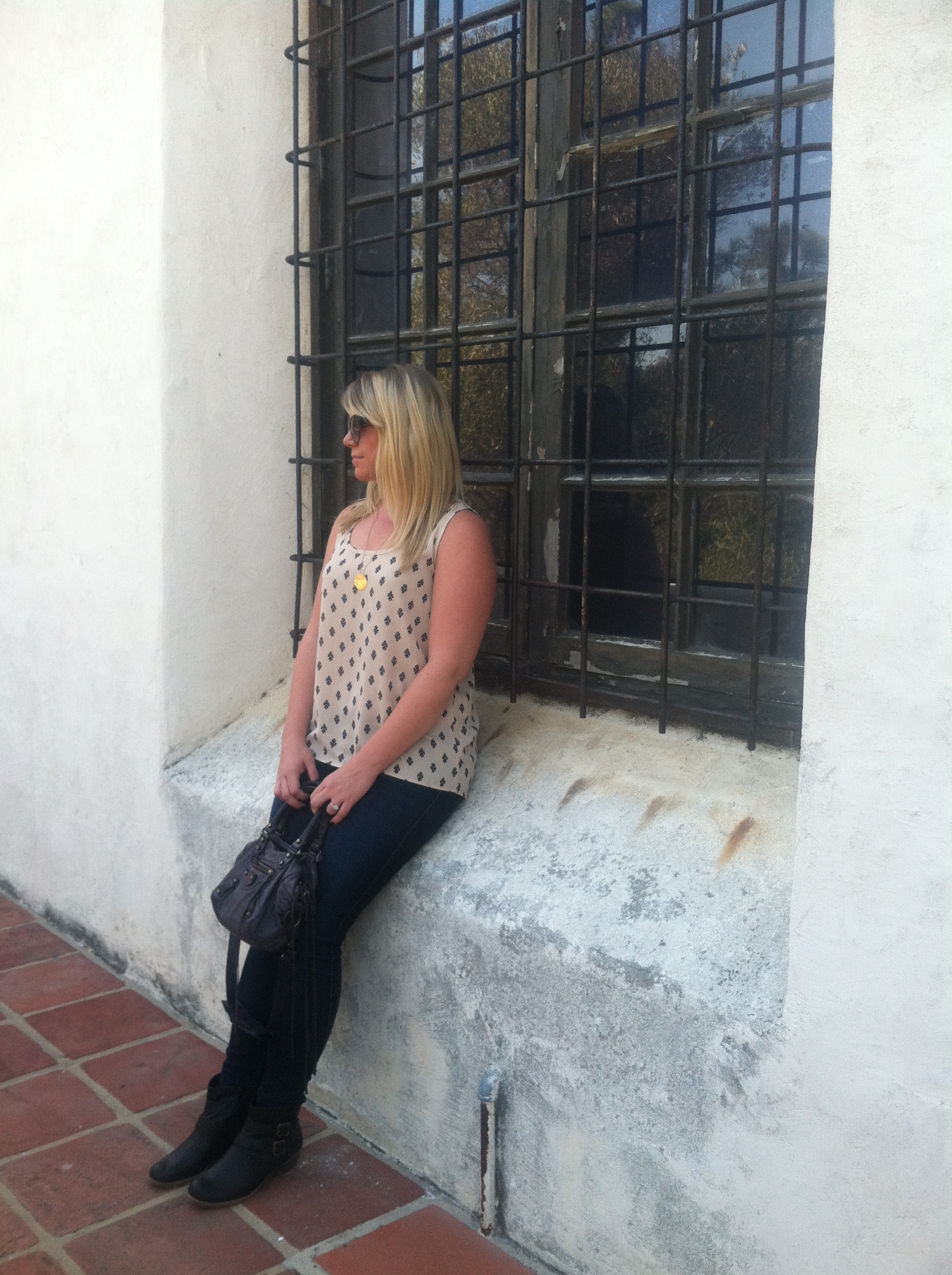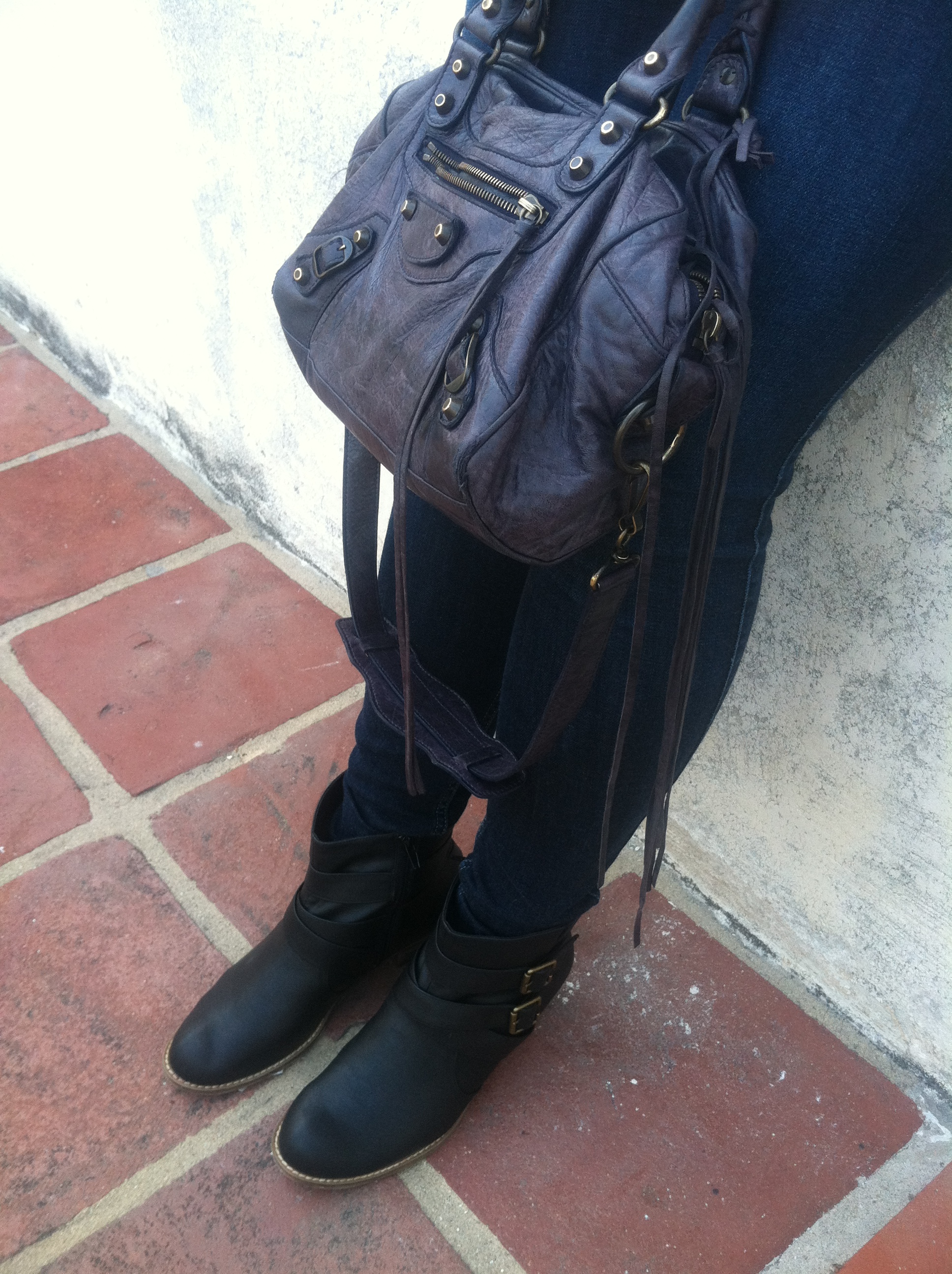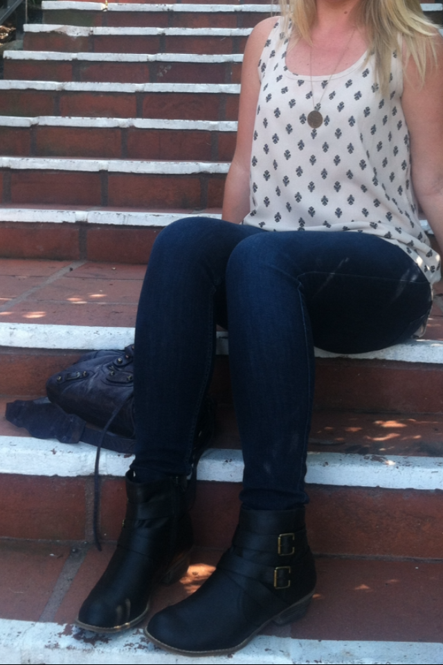 Top: Pleione Jeans: 7 For All Mankind Necklace: Gorjana & Griffin Boots: Abound for Nordstrom Rack Bag: Balenciaga