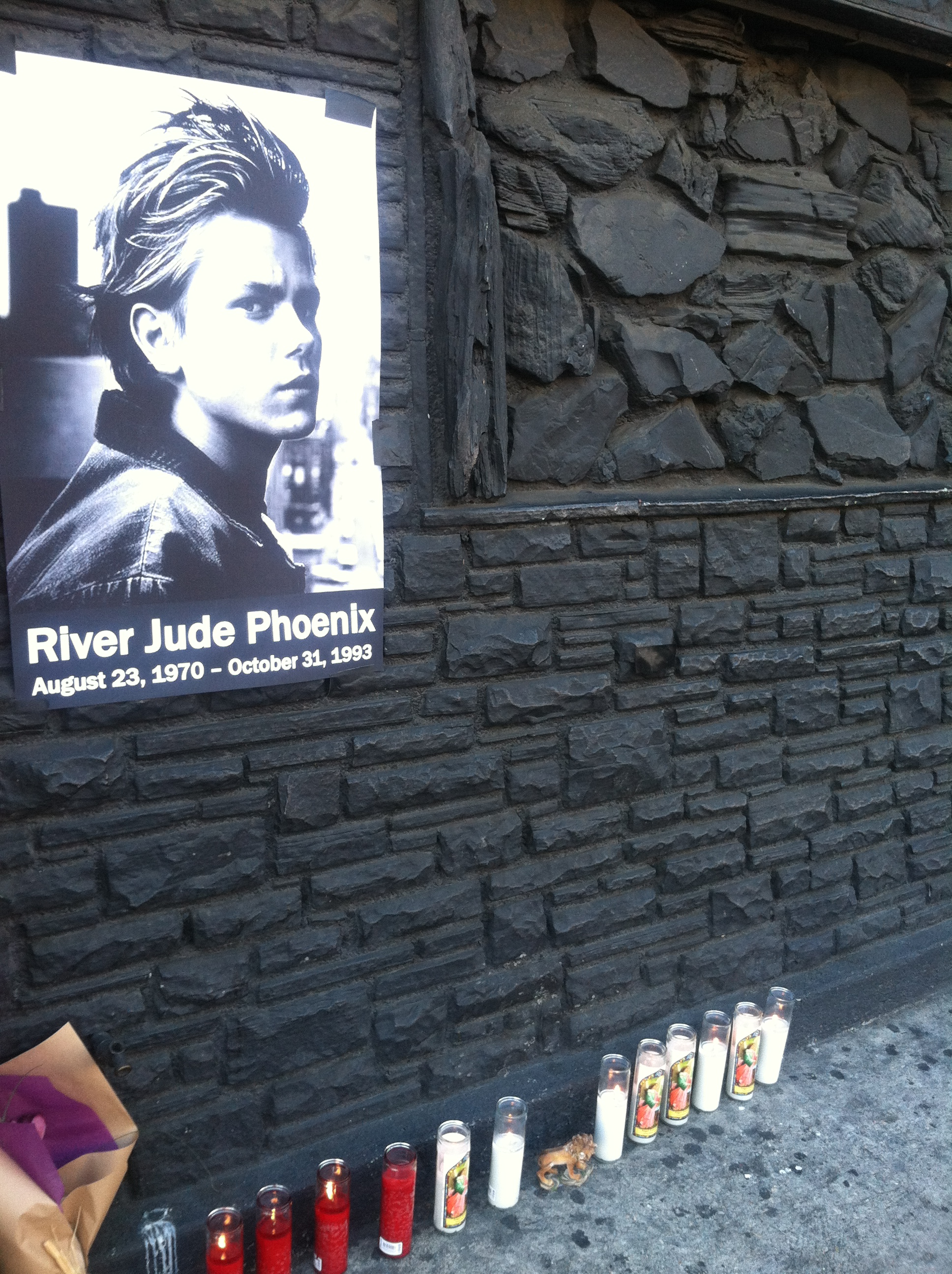 The Rainbow Bar, Whiskey A Go Go, Viper Room….ahhhhh, The Sunset Strip! I decided to spend Halloween with friends in West Hollywood (aka WeHo) and brave the 500,000 people on Santa Monica Boulevard for Carnaval. In order to find the energy for the fabulous crowd and over the top costumes a girlfriend and I spent the afternoon having lunch and Spicy Slappers at Rock & Reilly’s. After a delightful lunch we spent a little time walking one of the most famous blocks of Sunset and came across the memorial for River Phoenix (For those of you too young to remember, River died in 1993 of a drug overdose on the sidewalk in front of The Viper, Refinery29 wrote a great story you can read HERE). Never a dull moment in WeHo!
