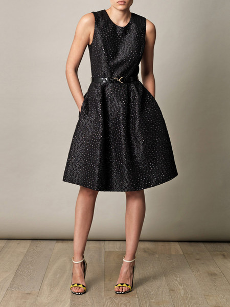 Yup, a new month means a new list of “Must Haves” for me! One of the things I love most about November is the start of the Holiday season and getting to add that Holiday “bling” to everything from sweaters to shoes! This month’s obsessions include: a black brocade dress, bright-colored smoking loafers, a digital print dress, midi rings, an ACTUAL animal print blouse, black knee-high heeled boots, and the winter wonderful embellished sweater. Happy Hunting!