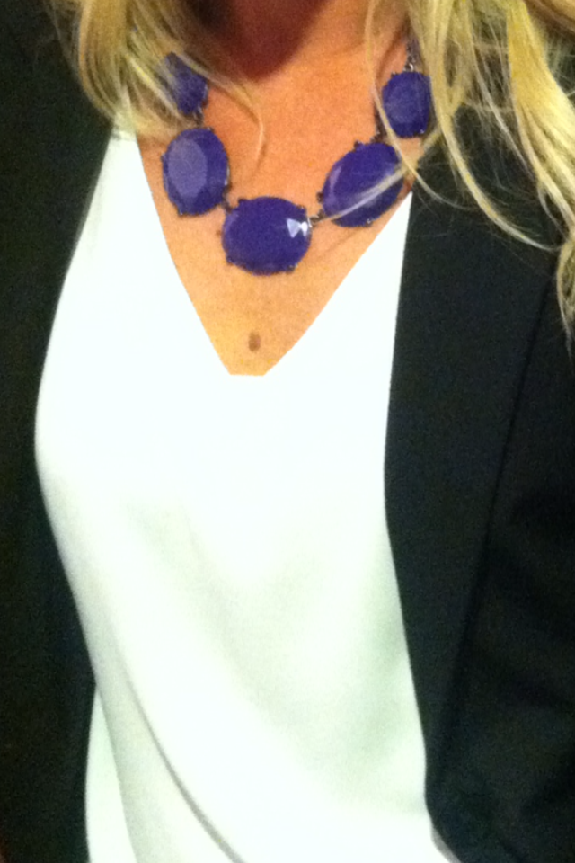 Jeans: Abercrombie & Fitch (seen HERE), Blouse: Bobeau for Nordstrom, Necklace: Nordstrom Rack, Blazer: Express, Heels: Michael by Michael Kors, Bracelet: Charming Charlie, Bag: Chanel Belt: Gap