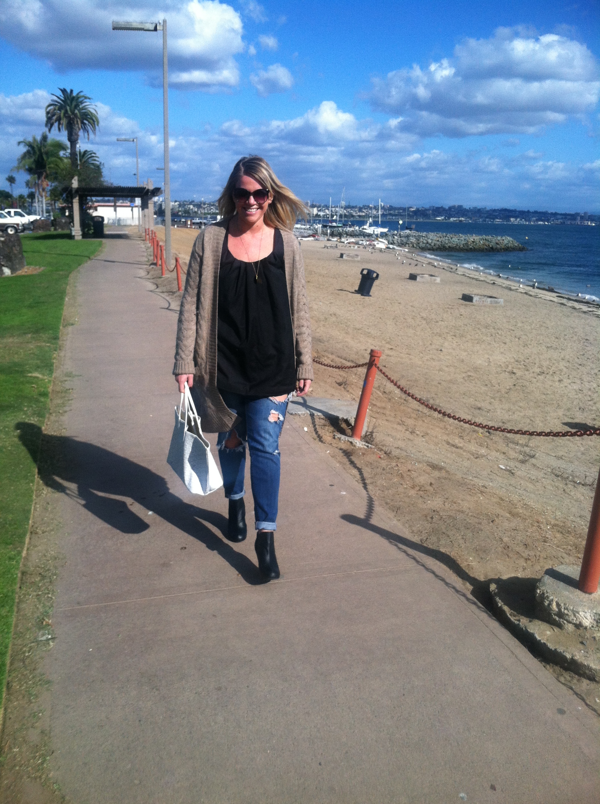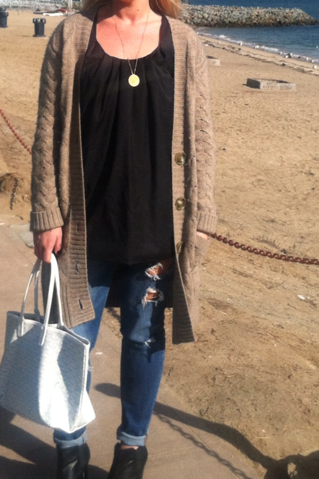 Jeans: Abercrombie & Fitch (seen HERE), Top: Ports 1961 (aka a celebrity hand me down), Sweater: Vince (also seen HERE), Booties: Steve Madden (HERE), Necklace: Gorjana & Griffin (HERE), Tote: Goyard (HERE), Sunglass: Mossimo for Target