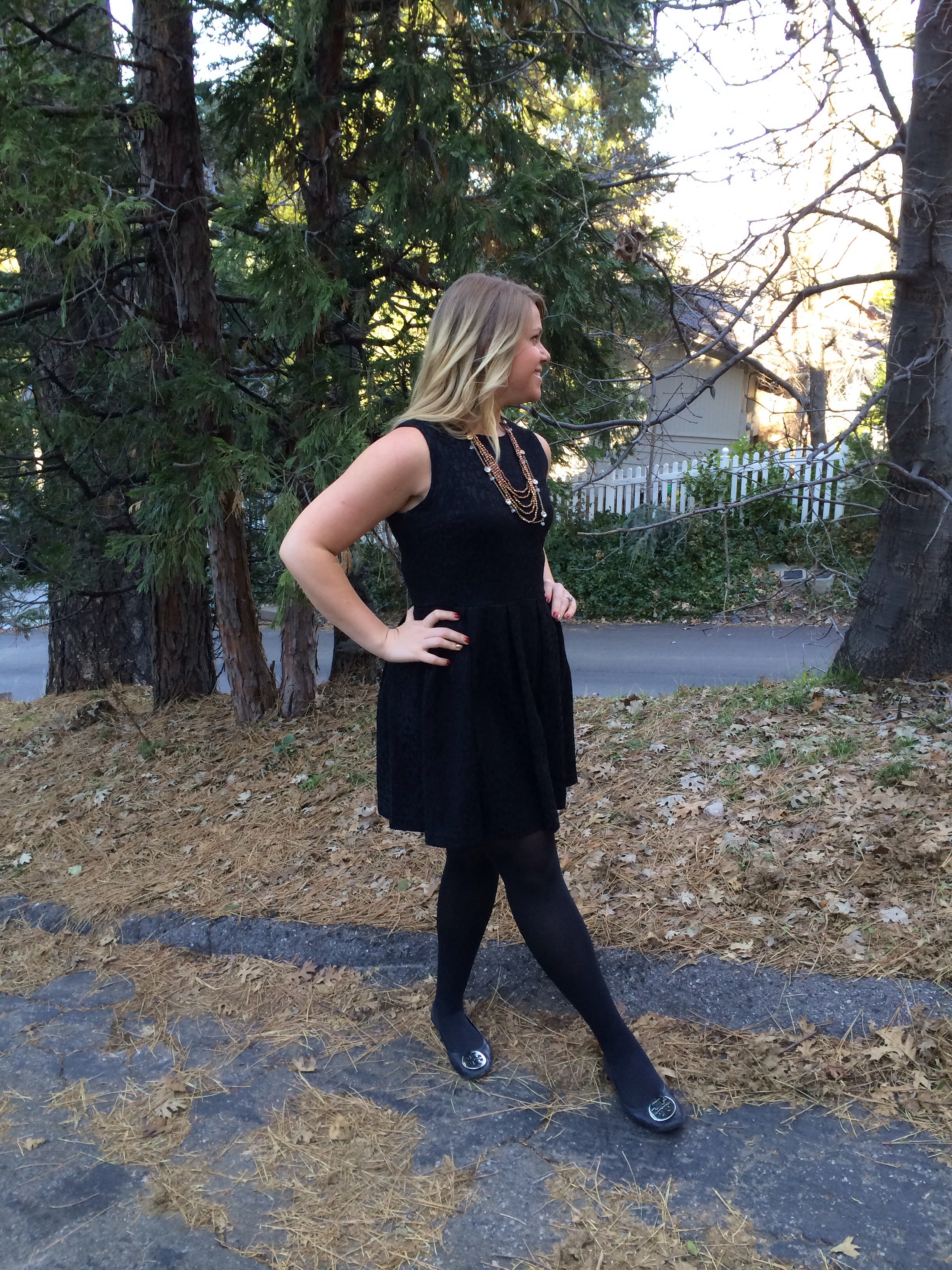 Dress: Vince Camuto (seen HERE), Jacket: Express (seen HERE), Tights: Nordstrom Rack, Flats: Tory Burch, Necklaces: Ann Taylor and Macy’s (seen HERE)