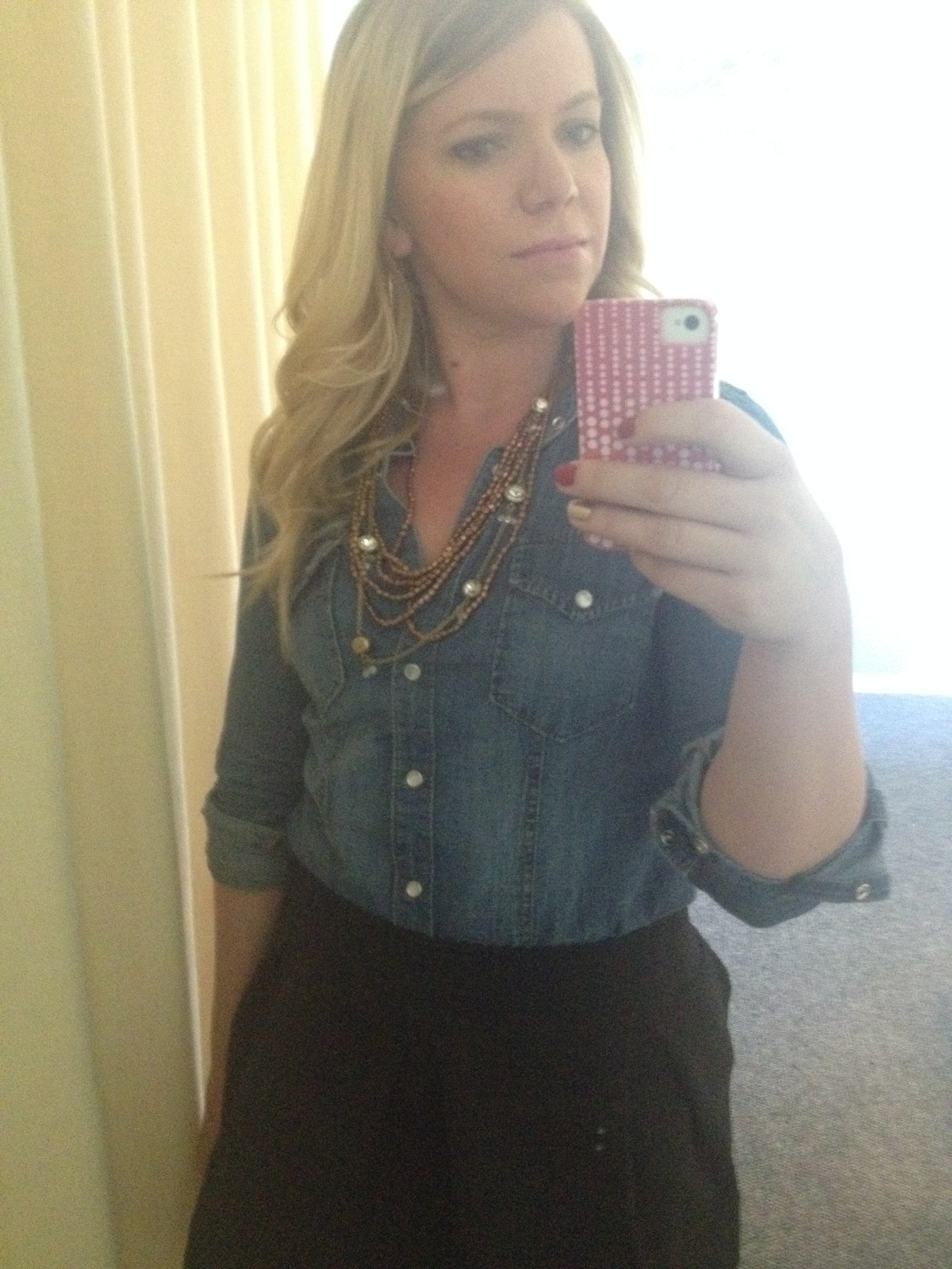 Shirt: GH Bass (seen HERE), Necklaces: Ann Taylor & Macy’s (seen HERE), Flats: Aldo (seen HERE)