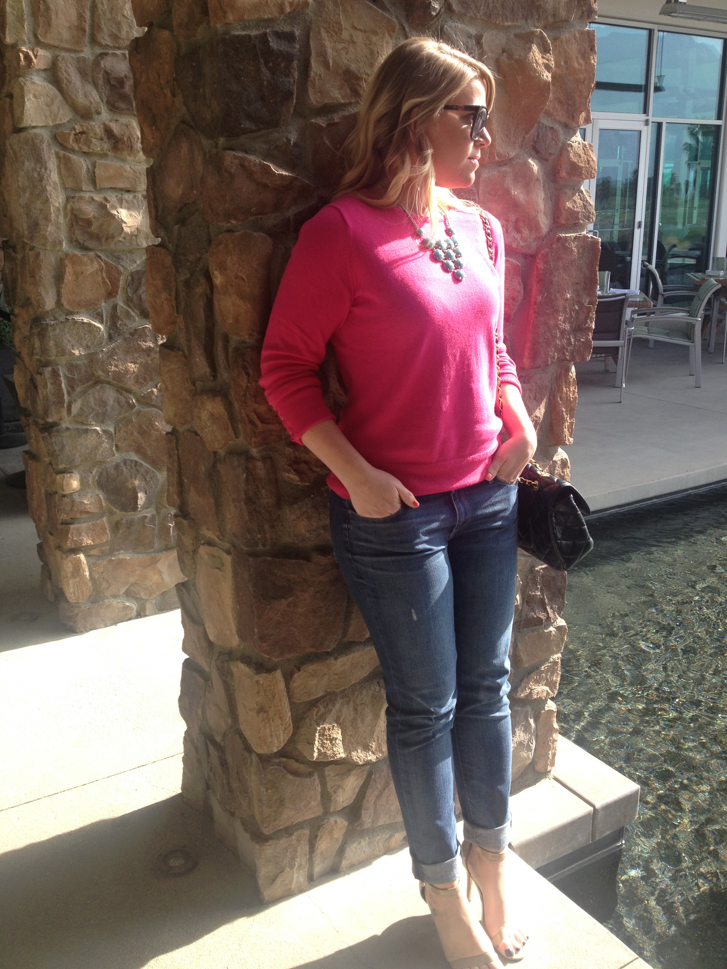 A pink cashmere pull over was the perfect sweater for lunch at Escena Gold Club! A friend of mine is currently running the stunning mid-century modern inspired golf club in Palm Springs. I met him for lunch and fell in love with the architecture and stunning views! If you haven’t explored this hidden spot yet you most definitely should!