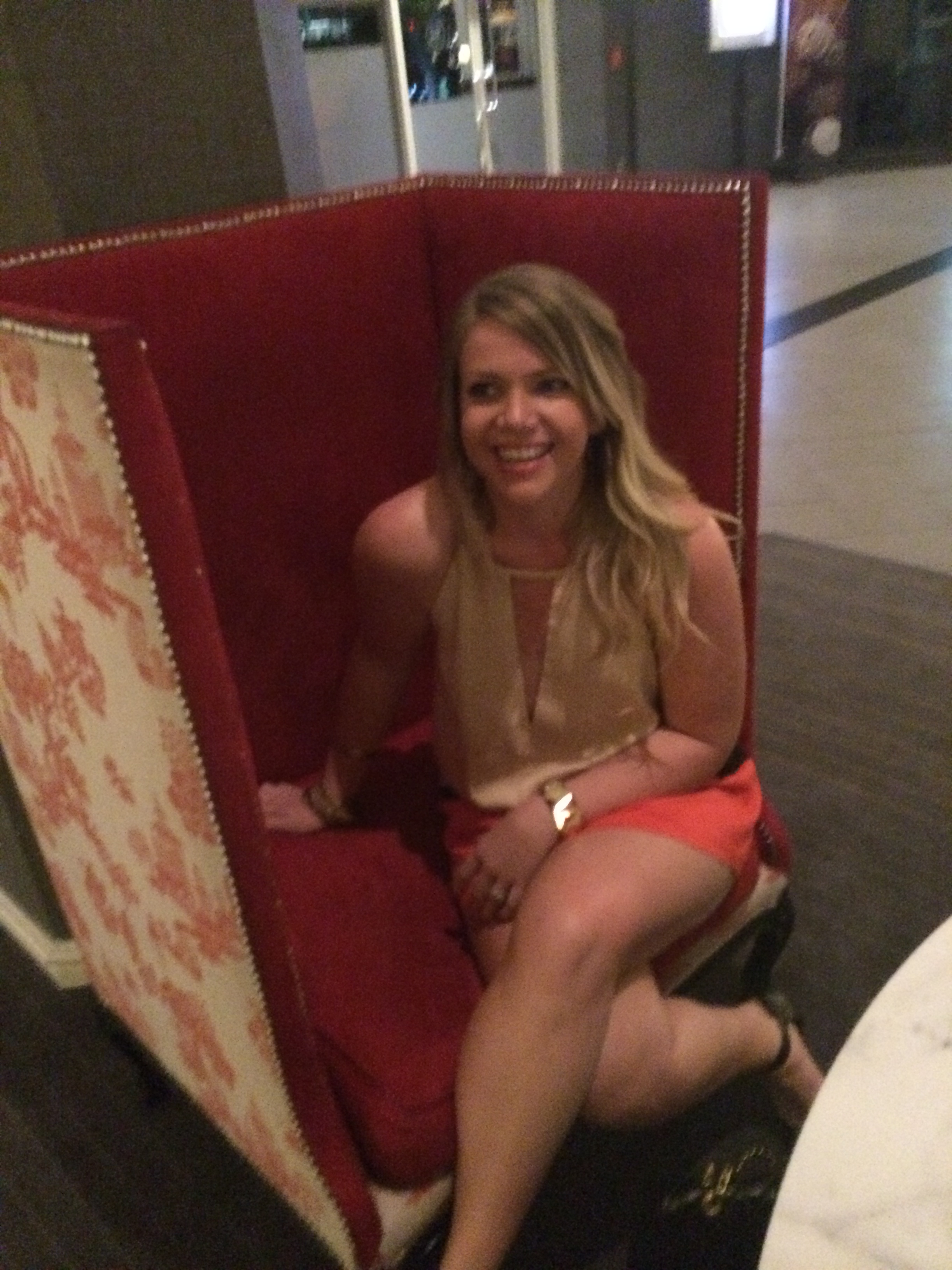 26 – Limited Champagne Gold Strapless with gold Jessica Simpson peep toe heels for drinks at The Standard in LA.