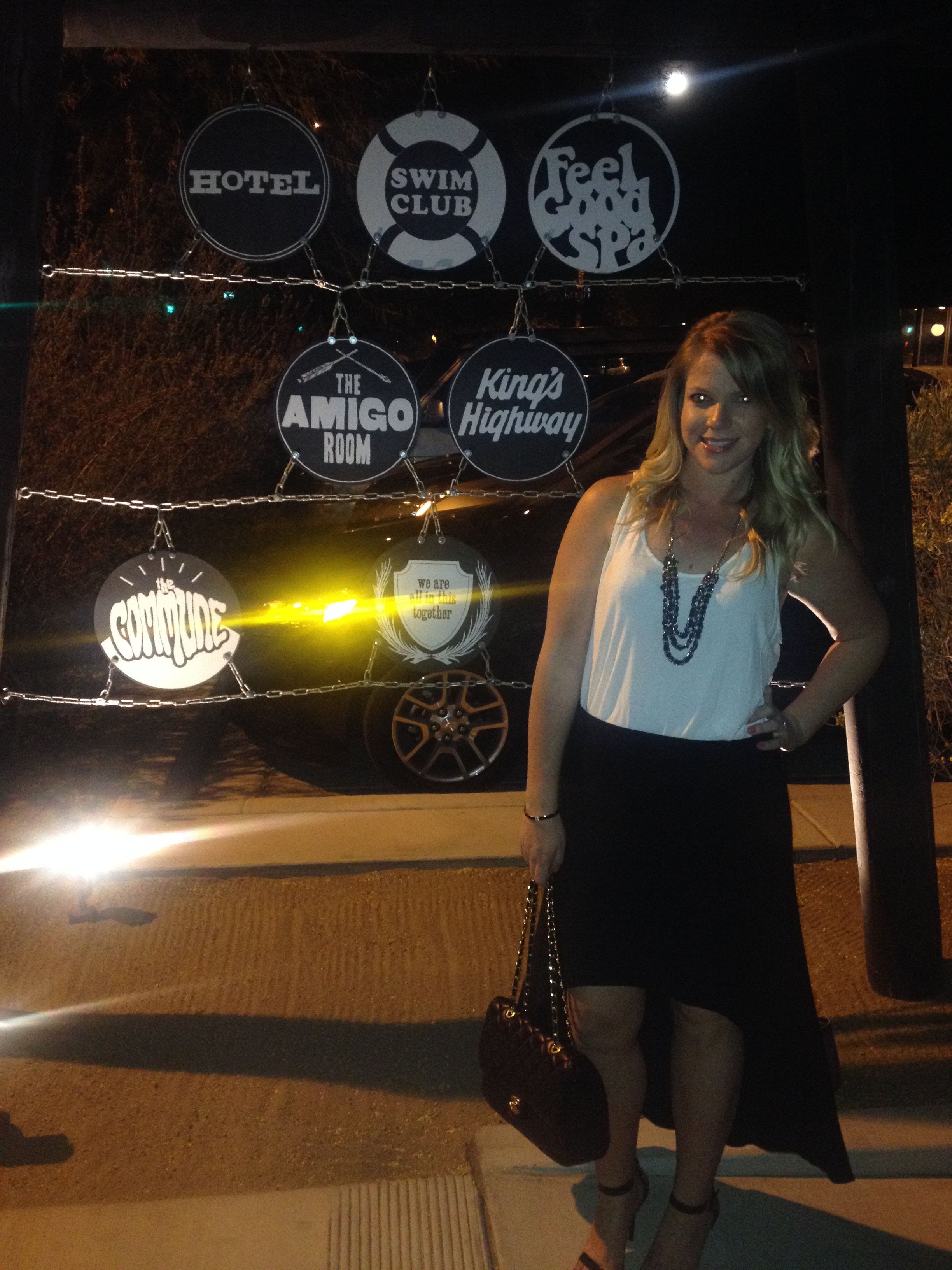 My friend, Jenna, gave me this hi/lo skirt last year and it has been hiding in my closet ever since though I’m not sure why! I really wanted to look a bit dressed up for Sissy Bingo with Bella de Ball at The Ace in Palm Springs without having to FEEL dressed up….does that make any sense? The skirt is a cotton fabric similar to a Tshirt and the tank is also that super comfy cotton…win!