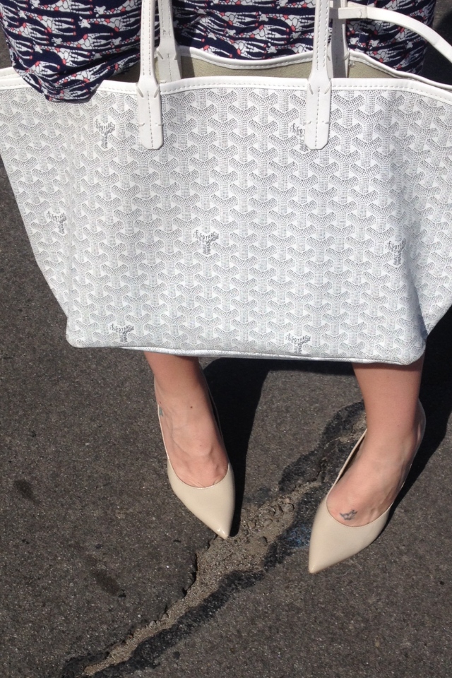 Dress: GH Bass, Heels: Guess, Bag: Goyard, Sunnies: Target, Necklace: Paperdolls Boutique, Earrings: Nordstrom, Bracelet: Gorjana & Griffin