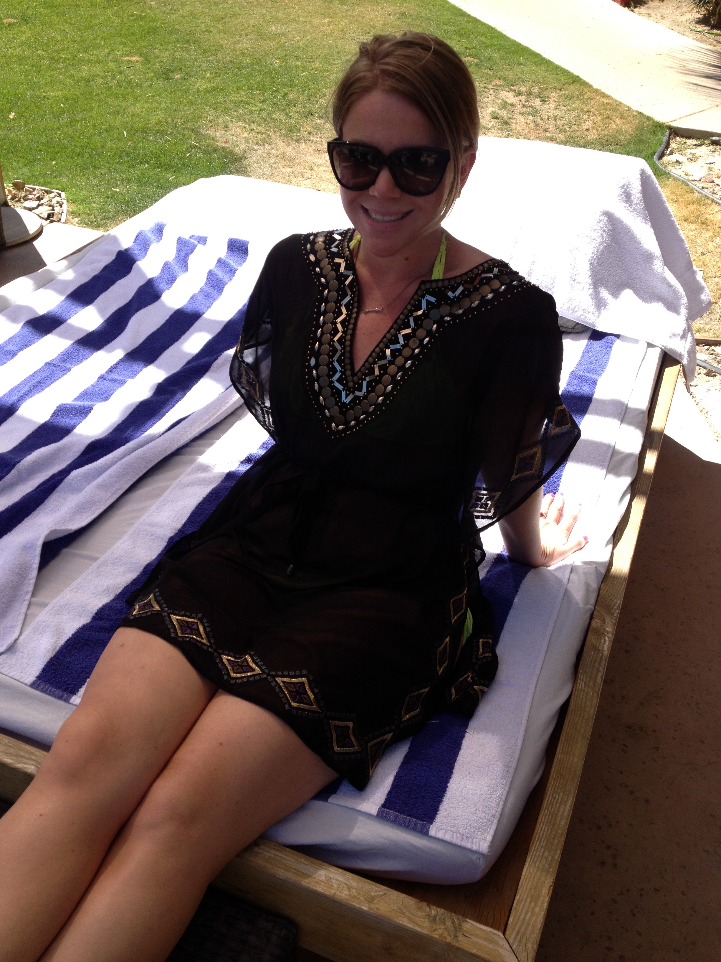 In case you haven’t heard, embellishment is all the rage this Summer season! I always love a little visual interest in my looks and the embellished trend is right up my alley! While in Palm Springs today I treated myself to a relaxing poolside afternoon complete with a cocktail (or two)! I have had this cover up for at least 4 years now and I just love it a bit more every time I wear it!