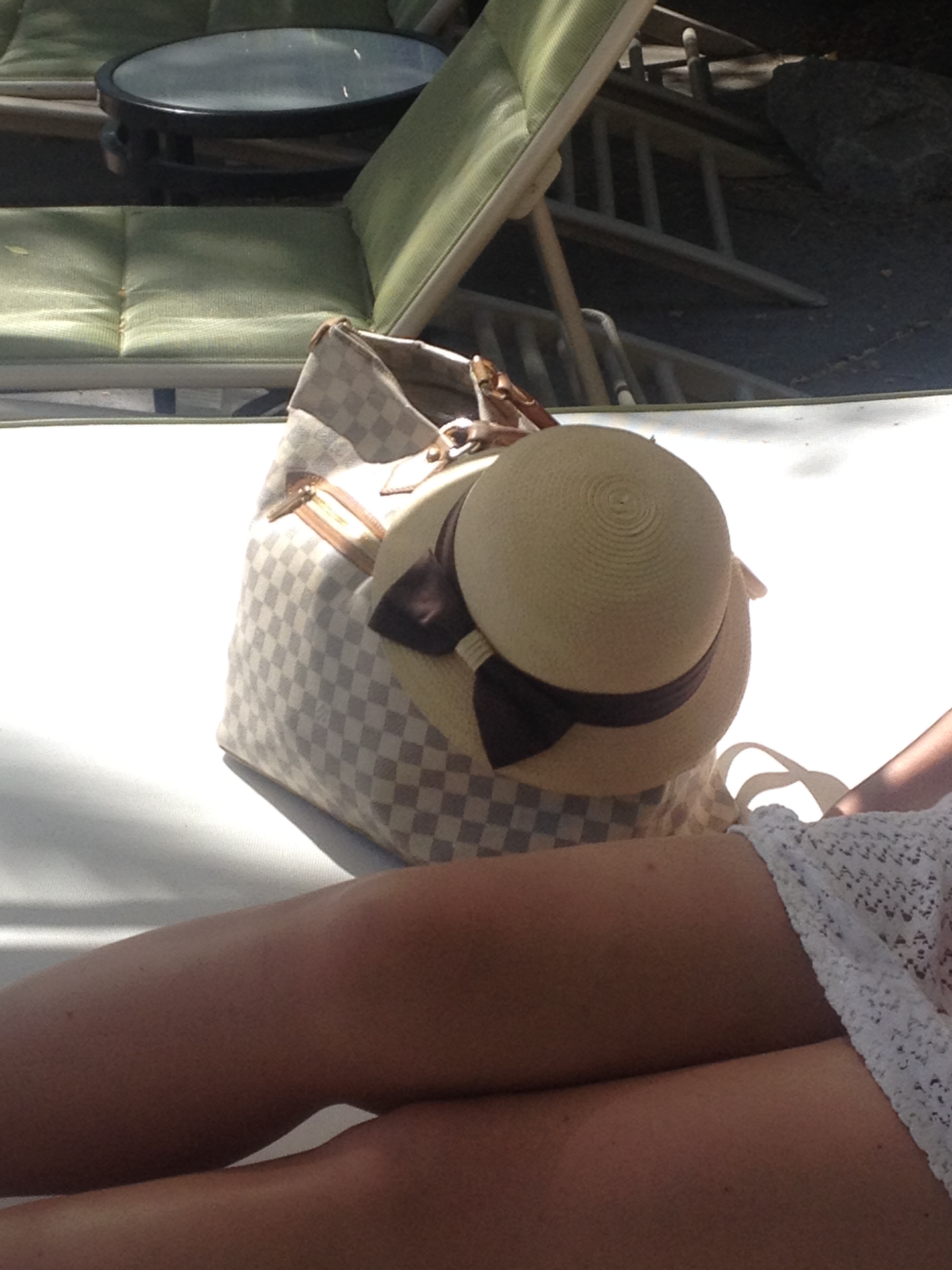Cover Up: Roxy, Bikini Top: Billabong, Coral Bottoms: Victoria’s Secret, Tote: Louis Vuitton, Sandals: Charlotte Russe, Hat: Nordstrom, White Sunnies: Target, Heart Sunnies: Guess
