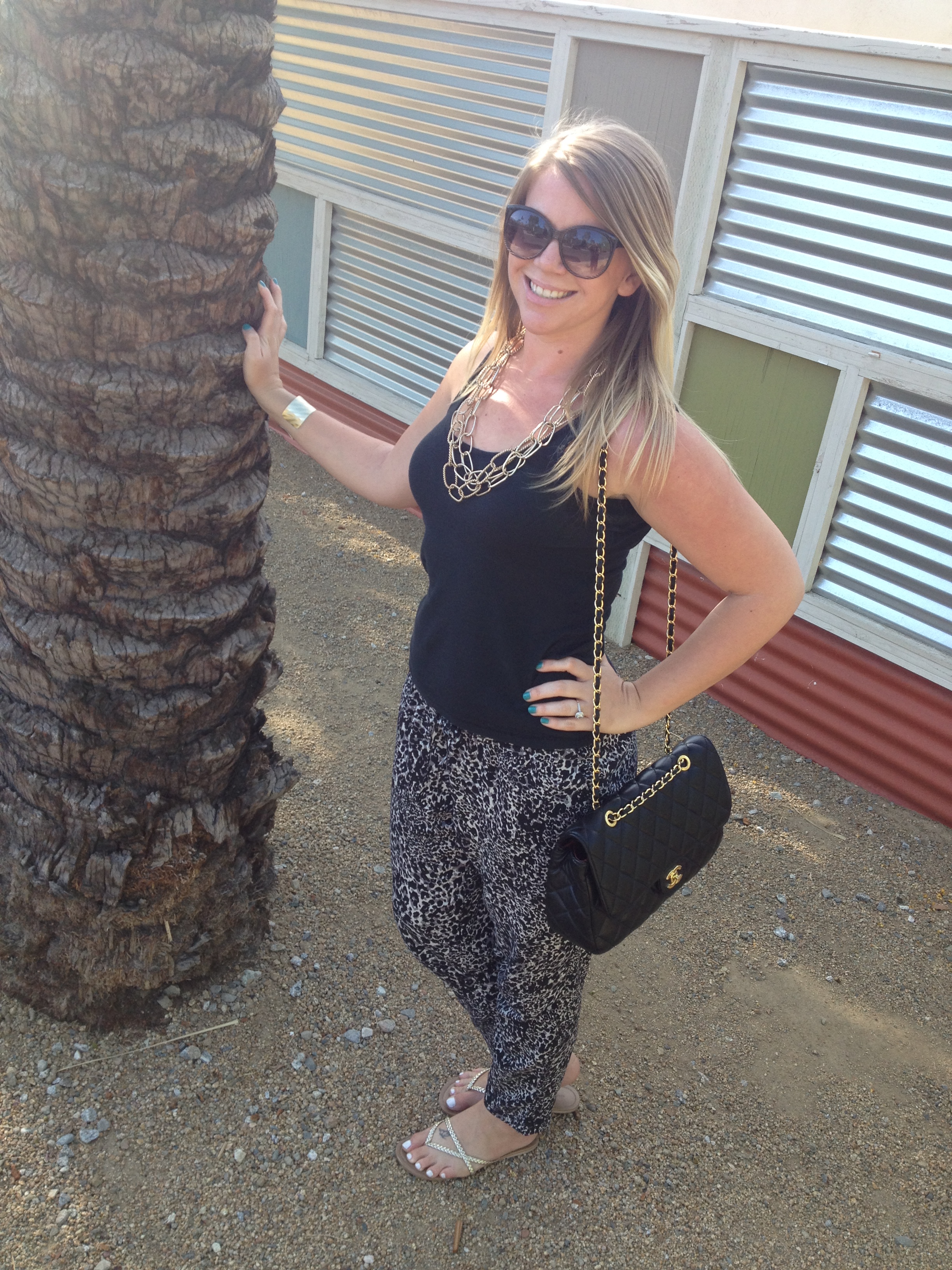 Pants: Banana Republic, Tank & Sunnies: Target, Bag: Chanel, Sandals: Charlotte Russe, Necklace: Charming Charlie, Cuff: Paperdolls Boutique