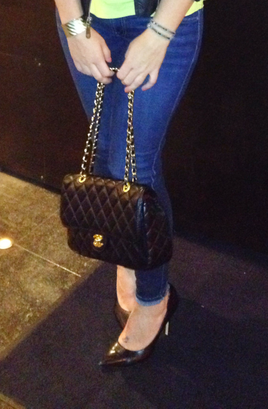 Jeans: 7 For All Mankind, Tank, Arrow Necklace & Gold Cuff: Paperdolls Boutique, Jacket: Vince Camuto, Wrap Bracelet: Energy Muse, Heels: Nordstrom, Necklace: Gorjana, Bag: Chanel