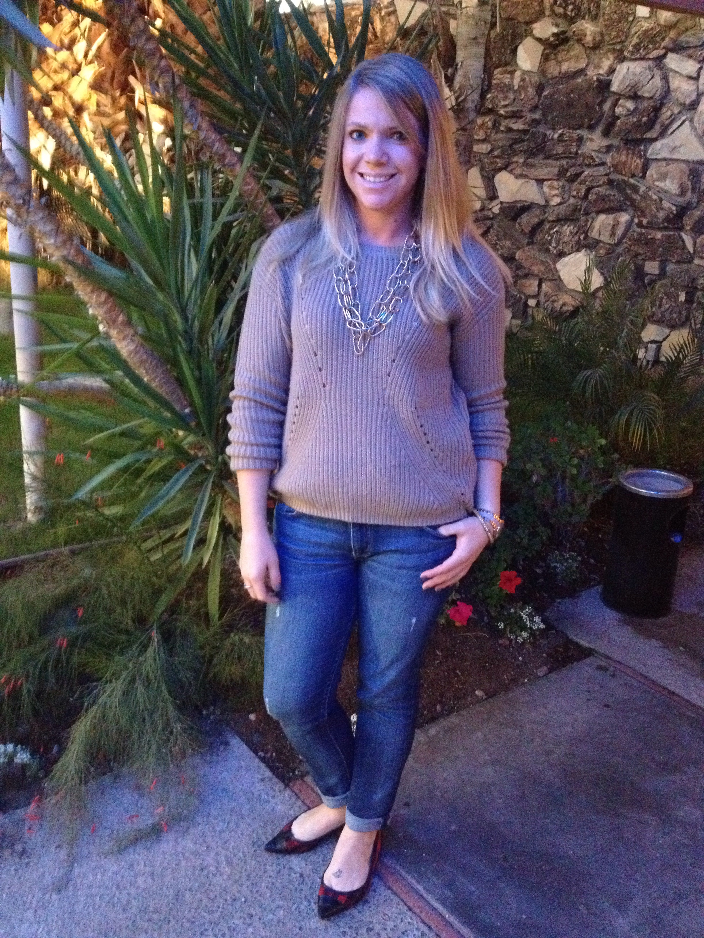 I started my Christmas in Palm Springs enjoying a beautiful, warm day and then headed home to Lake Arrowhead where it was FREEZING!!!!  Thankfully I planned ahead and layered my look for the day (and warmed up with some yummy Egg Nog!).