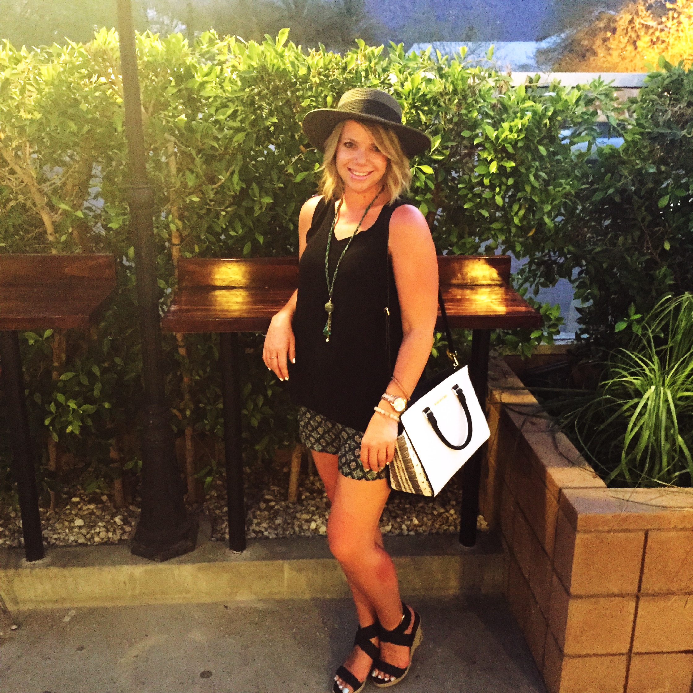 Tank (Nordstrom Rack but similar styles HERE and HERE) // Shorts (also from the Rack but love THESE and THESE) // Wedges (Old, Similar HERE) // Hat // Watch // Bag (Similar HERE)