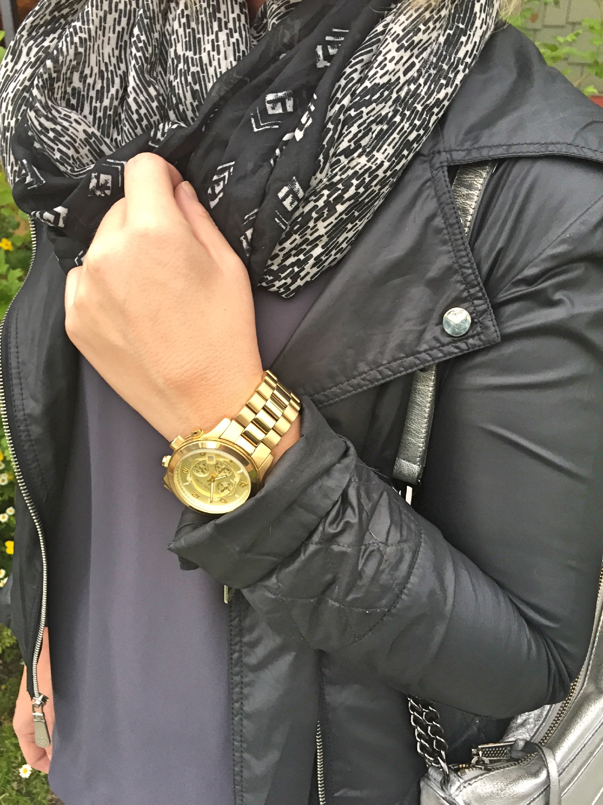 Jeans // Tank (from Nordstrom Rack, Similar HERE) // Jacket (Old, Similar Style HERE) // Espadrilles // Bag (Love this option as well) // Scarf (Similar HERE) // Watch // Lipstick: St. Germain by MAC