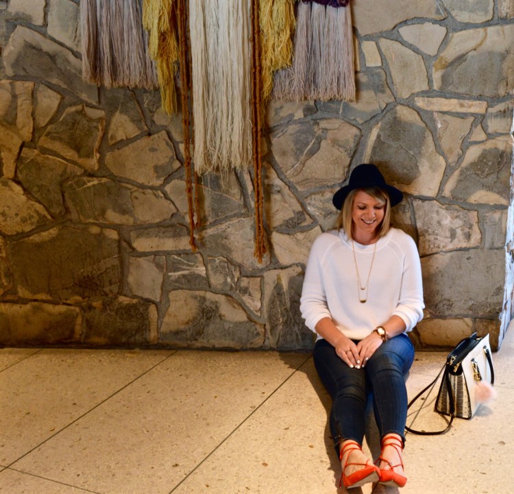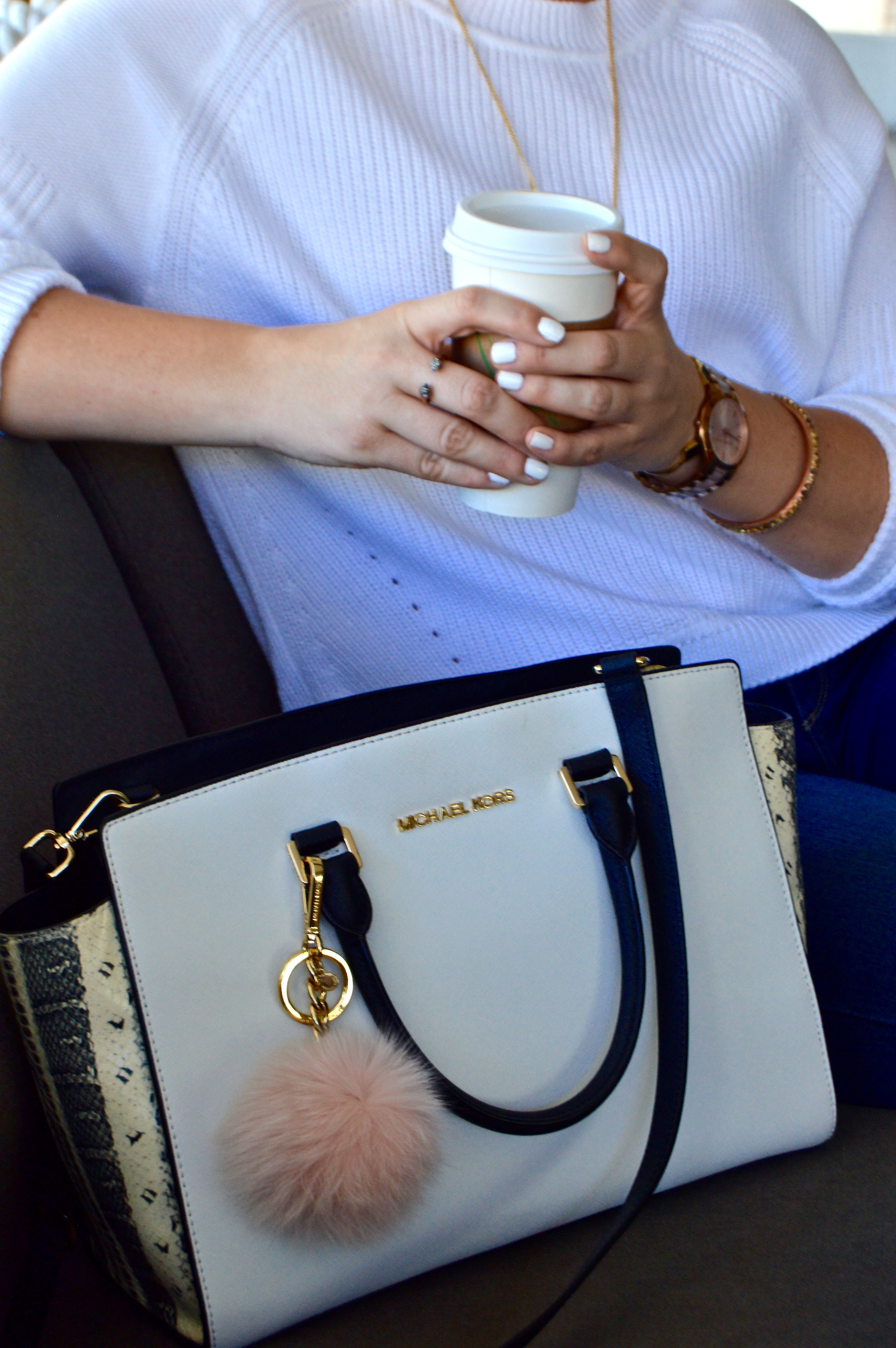 Jeans (exact pair HERE, similar and under $30 HERE) // Sweater (exact HERE, similar and under $100 HERE) // Flats (under 50) // Hat (Similar HERE and HERE) // Bag (old but similar HERE under $275) // Fur Pom Pom // Watch (love this Merlot version too) // Cuff (similar and under $70) // Necklace (Similar HERE, HERE, and HERE all under $40)