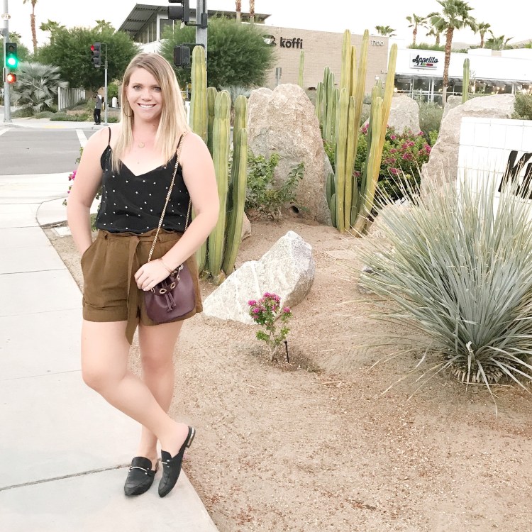 Read MoreShorts: H&M (old, similar styles HERE and HERE) Cami: L’Agence (wearing size Large) Slides: Steve Madden (true to size, wearing 10) Bag: Zara